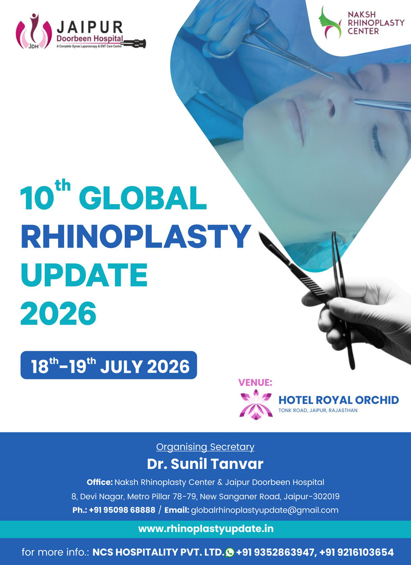 It is with immense pleasure that we extend a warm and cordial invitation to you for 10th Global Rhinoplasty Update 2026 conference hosted by Jaipur Doorbeen Hospital & Naksh Rhinoplasty Center, scheduled from 18th - 19th July 2026 at Royal Orchid Hotel, Jaipur.