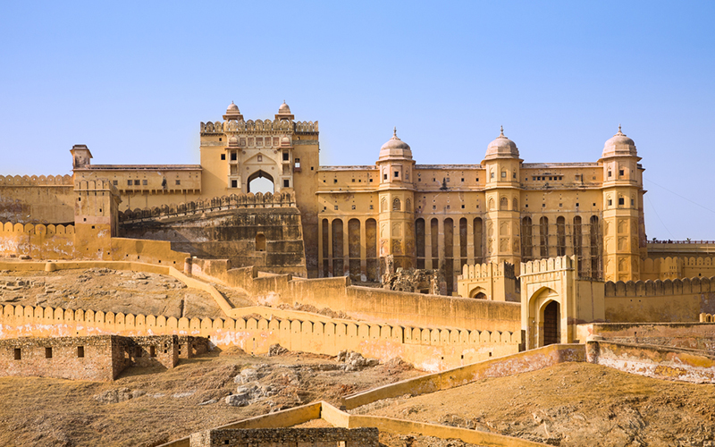 A grand fort known for its artistic Hindu-Rajput architecture, mirror work, and elephant rides. Overlooks the scenic Maota Lake.