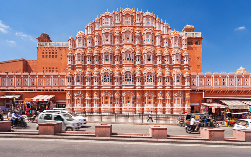 An iconic five-storey facade with 953 small windows (jharokhas) built for royal ladies to view the streets unnoticed. Known for its unique design and excellent ventilation.