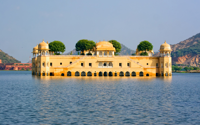 A serene palace situated in the middle of Man Sagar Lake. Originally a hunting lodge, it showcases symmetrical Rajput architecture with pink sandstone.